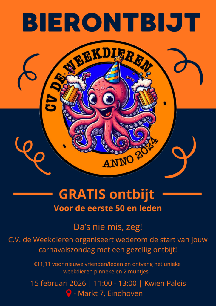 Want nadat je Carnaval weer goed gestart bent op zaterdag, kan je weer gezellig bij ons komen ontbijten!